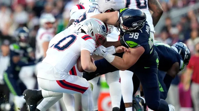 In a season, though, in which I marveled at Jaxon Smith Njigba, Nick Emmanwori, and others, my favorite play of the whole show was, unquestionably, the Rylie Mills sack of Drake Maye in the Super Bowl. It was the perfect embodiment of physical dominance as he overpowered Patriots guard Jared Wilson with one arm, then grabbed Maye with his other, barreling both players to the ground. That play, in my mind, was the absolute perfect exclamation point ending to Seattle’s season that was led by their dominating defense.